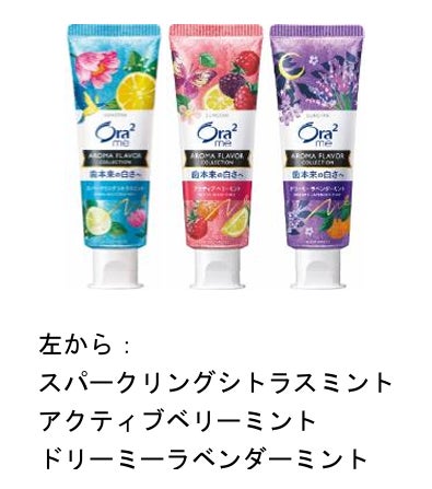 気分によって選べるアロマエッセンシャルオイル(香料)配合のハミガキ。3種類の清掃剤配合でしっかりステイン(着色汚れ)を除去します。香料にはアロマエッセンシャルオイルを独自のブレンドで配合し、それぞれの気分に合わせて、歯みがき時間を前向きに楽しめるようなこだわりのフレーバーに仕上げました。