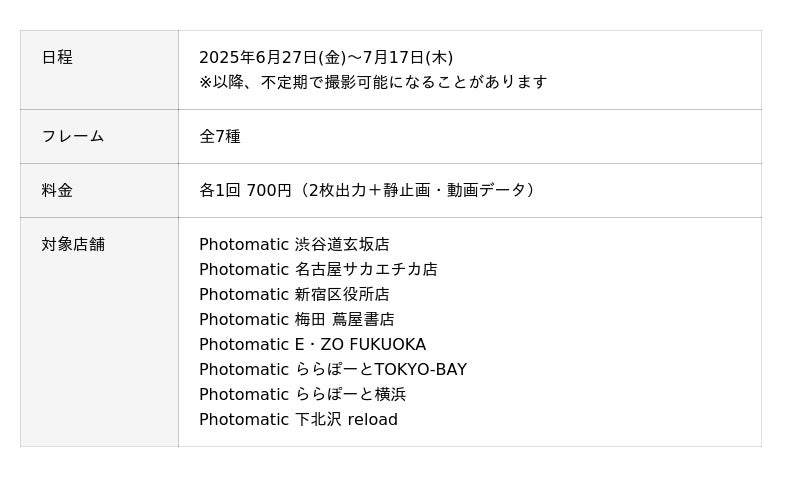 全国8カ所で6月27日(金)~7月17日(木)まで7種のオリジナルフレームが登場