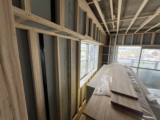 壁面にミラフォームを新設いたしました。プラスチック発泡技術によって押出法ポリスチレンフォームでは限界だった断熱性能をさらに高めます。