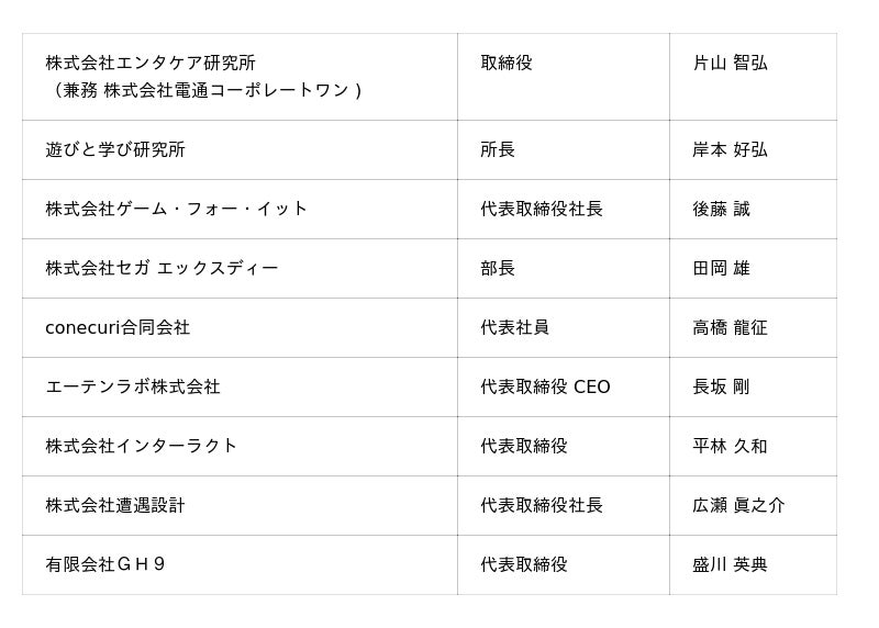 本委員会は、ゲーミフィケーションカオスマップ委員会の体制を引き継ぎ、同様のメンバー(一部変更あり)で構成しています。今後も本委員会では、ゲーミフィケーション市場の実態を継続的に把握・共有していくことを目的に、市場規模調査・カオスマップ作成を実施・検討して参ります。