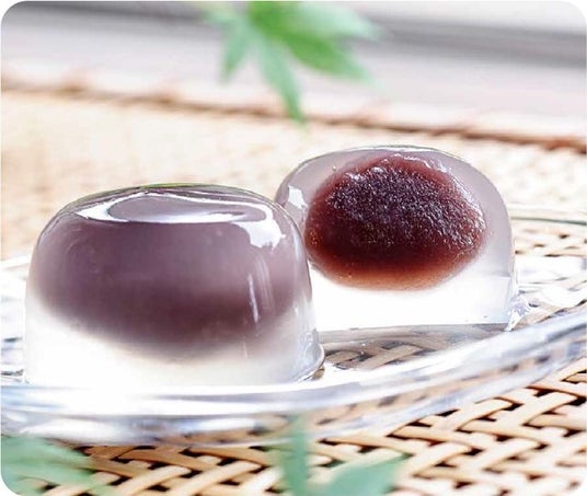 なめらかなこし餡を、葛寒天で作ったぷるぷる食感の皮で包んだ涼菓子。つるんとした喉越しがたまらない!少し冷やしてお召し上がりください。