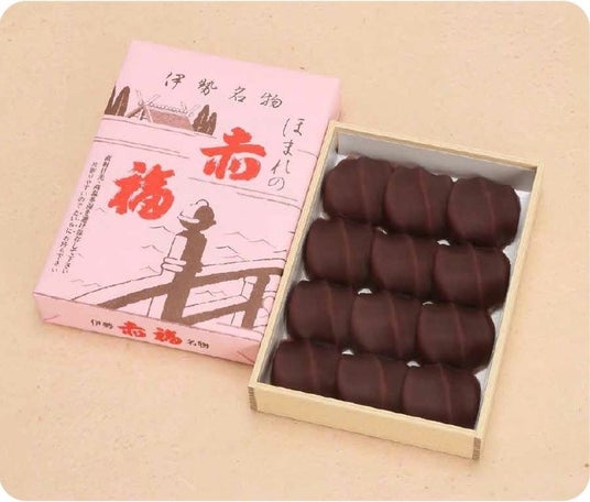 約300年前に誕生した赤福餅。伊勢神宮神域を流れる五十鈴川のせせらぎをイメージし、餡に付けた三筋の形は清流、お餅は川の小石を表しています。程良い甘さとお餅の絶妙な食感がたまりません。