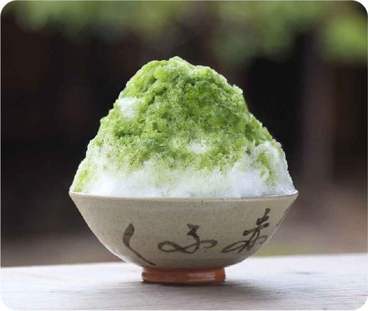 冷たい氷になじむ特製の餡とお餅が、抹茶蜜をかけたふわふわかき氷の中にスタンバイ。抹茶蜜と氷、餡と餅をひとすくいで一緒に食べると、お口の中でほっこりやさしいハーモニーを奏でます。茶屋をイメージした空間で、ゆっくりとご賞味ください。