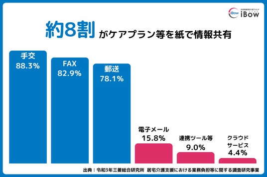 この業務量を圧迫している一因として、ケアプランを含むサービス提供事業所との書類のやり取りが多い点が挙げられますが、いまだにFAXや手交(手渡し)でのやり取りが一般的であり、非効率な業務運営が課題となっています。