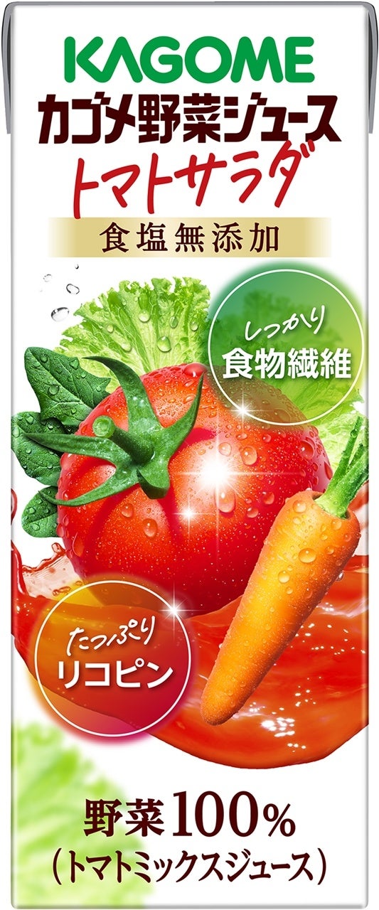 このたび発売する「カゴメ野菜ジュース トマトサラダ」は、トマト・にんじん・ほうれん草・レタスの4種類の野菜を使用した野菜100%ジュースです。素材を活かした味わいで、手軽においしく野菜を摂取することができます。たっぷりのリコピンと食物繊維が含まれており、手軽に野菜を摂りたい方、すっきりとした味わいを楽しみたい方におすすめです。