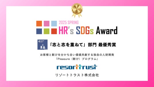 リゾートトラスト株式会社(本社:愛知県名古屋市、代表取締役 社長執行役員:伏見 有貴)は、この度、当社独自のホテル人材開発プログラム「Pleasure(歓び)プログラム」が、人事領域の専門家が集う任意団体「One HR」が主催する「HR’s SDGsアワード2025」において、準グランプリに選ばれ、「志と志を重ねて」部門の最優秀賞を受賞しましたのでお知らせいたします。