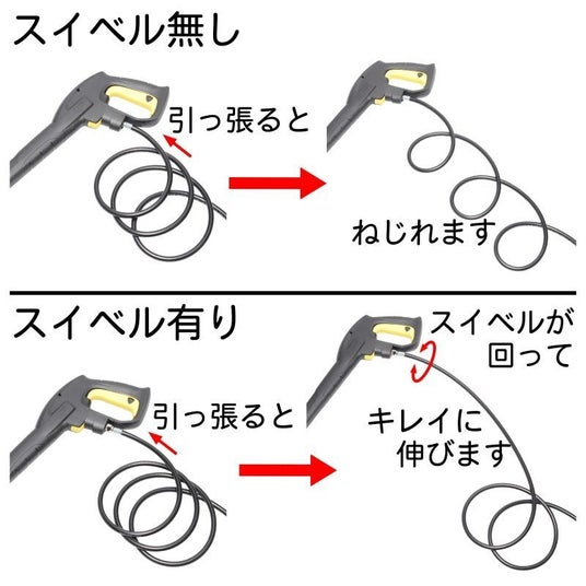 洗車や家の外壁、ベランダの清掃などで高圧洗浄機を使用する際、ホースがねじれたり絡まったりして、作業が中断されたり、扱いにくさを感じたりした経験はないでしょうか。特に、移動しながら洗浄作業を行う場合、ホースのねじれは大きなストレスとなっていました。