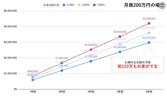 月商200万円の施設では、決済手数料3.5%と2.48%の差が5年間で約122万円に。キャッシュレス化は「効率化」だけでなく、「経営改善」につながる重要な判断材料となります。