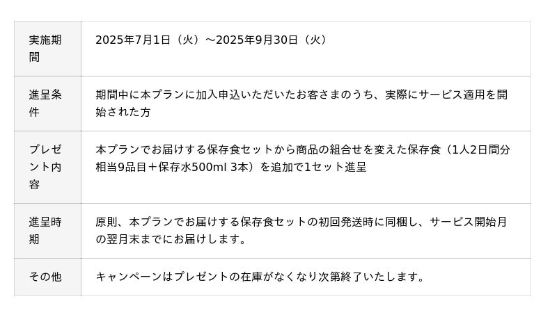 ■for 保存食ローリングストックプラン スタートキャンペーンの内容