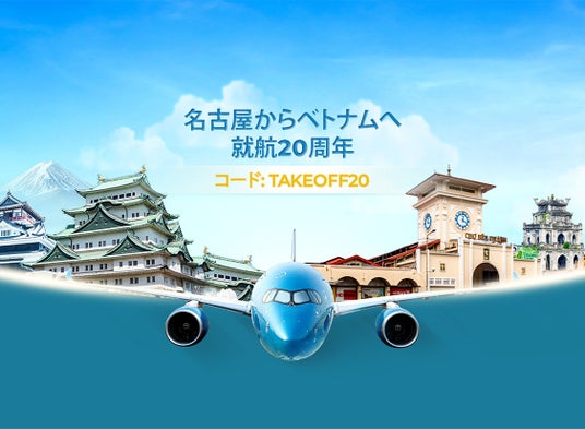また、名古屋-ベトナム線では就航20周年を記念した特別キャンペーンを実施中です。2025年の毎月11日、12日、13日に限定して、名古屋発ベトナム行き航空券が最大20%オフとなります。予約時にコード「TAKEOFF20」をご利用ください。