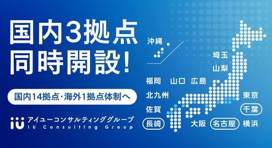 全国トップクラスの相続・事業承継支援実績を誇るアイユーコンサルティンググループ(本社:東京都豊島区、グループ共同代表:岩永 悠/出川 裕基 以下当グループ)は、2025年7月1日、国内で3拠点(長崎事務所、千葉営業所、名古屋営業所)を新たに同時開設しました。これにより国内拠点は14拠点体制となります。