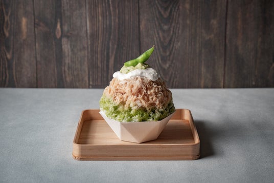 カフェ「囲炉裏と甘味 gururi」で人気のかき氷メニューから、オリジナルかき氷「豆翠(とうすい)和紅茶と揖斐抹茶 すったてと枝豆」をミニサイズにして提供。この機会にお楽しみください。