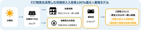 において、太陽光パネルと蓄電池を各戸に搭載し、再生可能エネルギーの自家消費と売電収入の全額を個々の入居者に