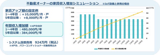 不動産オーナーには、当社標準装備のIoT設備との相乗効果により、さらなる物件価値の向上と高い入居率による収益性向上というメリットを提供し、持続可能な賃貸経営を支援します。