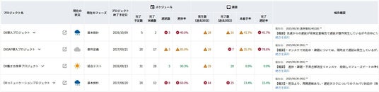 これにより、「このプロジェクトは雨マークになっているから状況を確認しよう」といった対応がスムーズになりました。