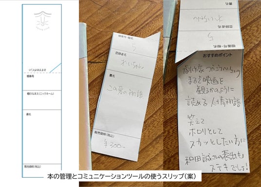 レジで会計の際、管理表と切り離して、本にはさんで購入された方にお渡しします。
