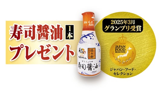 2025年8月8日(金)~8月17日(日)のお受取り限定で、前日までに対象のお持ち帰り商品をご予約いただくとジャパン・フード・セレクションで最高位のグランプリを受賞した『寿司醤油』をプレゼントいたします。