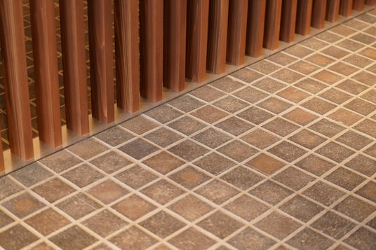 愛知県産の杉の格子とリサイクルレンガタイル