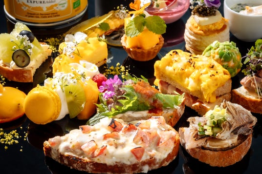 GRADATIONS定番のセイボリーは、7種類のチーズを使用したタルティーヌと、トロピカルフルーツをふんだんに使用したミニャルディーズで彩られ、アフタヌーンティーはもちろんお食事としてもお楽しみいただけます。