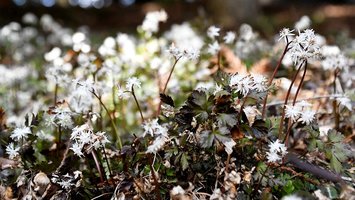 白い妖精「セリバオウレン」春告げる 岐阜・高山市の熊野神社