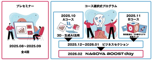 NAGOYA BOOSTとは、2018年にスタートした、最新テクノロジーの学習と事業開発に必要なマインドセットを行う、新たなビジネスを創出する人材の輩出を目的としたプログラムです。本年度は、社会課題の解決をテーマに、初心者歓迎のAコース、上級者向けのBコースの2コースをご用意し、柔軟なプログラムへとアップデートして実施します。