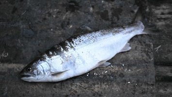 東の空が白み始める中、肌寒い風を受けながら上流へ舟を操る。目指す先に、サツキマスの通り道に仕掛けた網がある。