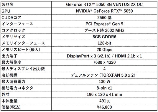 https://jp.msi.com/Graphics-Card/GeForce-RTX-5050-8G-VENTUS-2X-OC