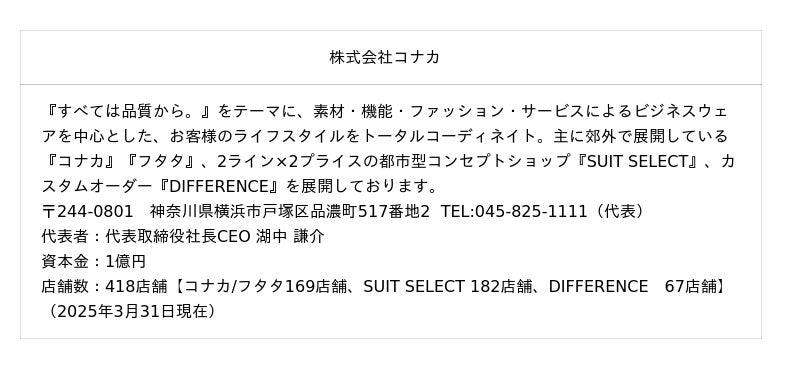 株式会社コナカでは、お客様の利便性と接客サービスの向上により、さらにショッピングを楽しんでいただけるよう今後も取り組んでまいります。