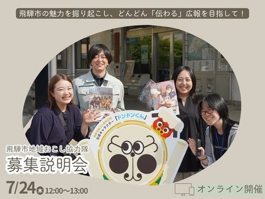 - 対象:地域おこし協力隊に興味のある方、飛騨市での活動を検討されている方