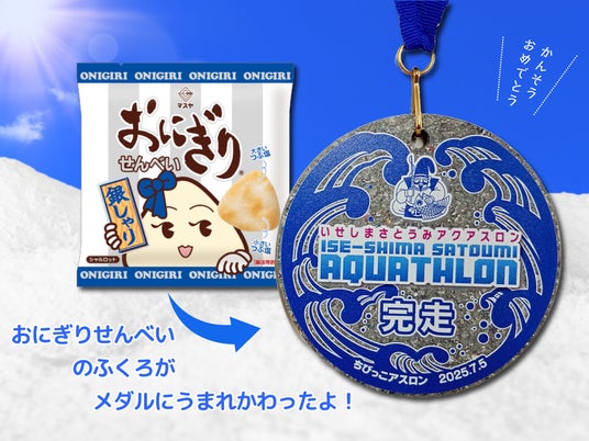 IXホールディングス株式会社(本社:三重県伊勢市 代表取締役社長 浜田吉司)は、グループ会社である株式会社マスヤの「おにぎりせんべい銀しゃり」の包材ロスを活用し、2025年7月5日に開催される伊勢志摩・里海アクアスロン2025"体験ちびっこアスロン部門"の完走メダルを提供します。