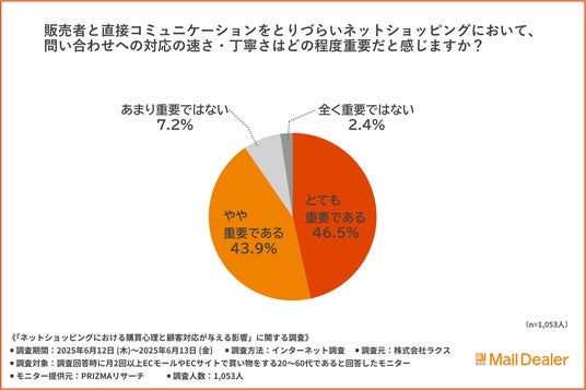 約9割がネットショッピングにおいて問い合わせ対応の速さ・丁寧さは「重要」と回答