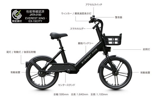 EVEREST XING CITYは特定原付区分の電動サイクルです。ハンドル操作は自転車のように軽やかに、