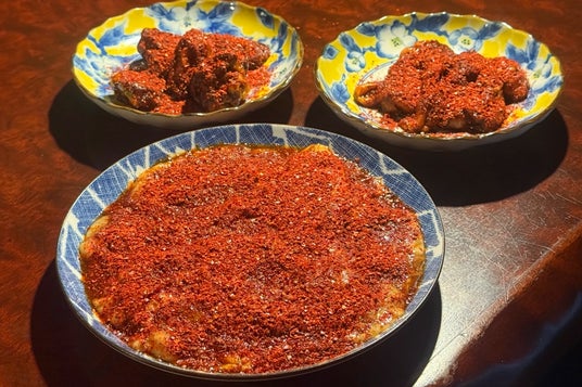 中でもイチオシは「地獄とんちゃん」。愛知が誇る味噌文化の代表格・八丁味噌を使用した濃厚ダレが豚ホルモンに絡み、激辛仕立てで登場します。