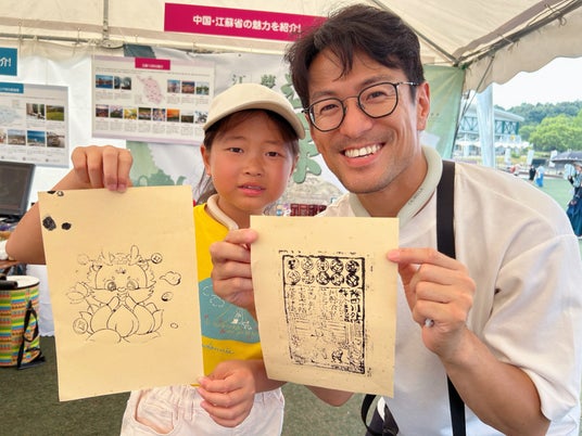 古代の印刷技術を紹介する「木版印刷体験コーナー」では、来場者がスタッフの指導のもと実際に印刷を体験できる。江蘇ならではの風景が施された拓本が一枚一枚丁寧に刷り上げられ、墨の香り漂う“旅の記念”がその場で完成する。また、伝統工芸の美しさを伝えるため、来場者は「通草(つうそう)」の薄片を使って通草花を手作りすることもできる。繊細で優美な伝統技法に触れながら、静かに心を整え、ものづくりの楽しさを実感していた。