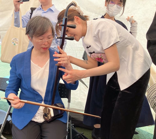 在日著名の二胡演奏家であり、江蘇省海外連誼会の常務理事でもある張濱氏は、開幕式にて見事な二胡演奏を披露したほか、江蘇ブース内でも来場者との温かい交流を行い、音楽を架け橋として故郷への想いと友情を伝えた。その情感豊かな演奏と観客との心の触れ合いは大きな反響を呼び、江蘇の音楽文化の魅力を広く発信する機会となった。来場者は、無形文化遺産の技に「手で触れ、目で見て、心で感じる」体験を通じて、文化のぬくもりを実感し、言葉を超えた心の共鳴を味わっていた。