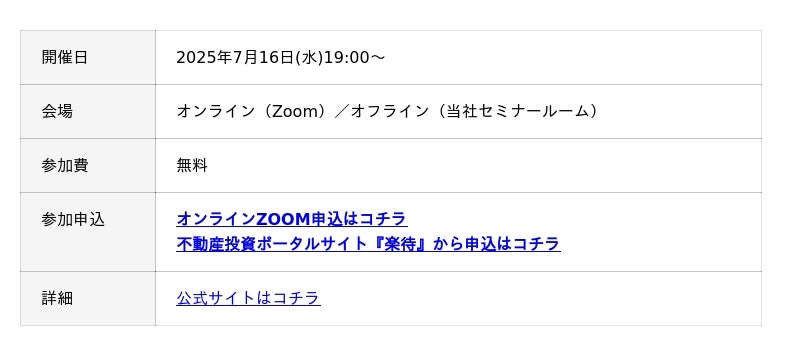2025年7月12日開催の福岡の新築アパート一棟投資を支援する無料不動産投資セミナーが、国内最大級の不動産投資情報サイト「楽待」の人気セミナーランキングで初登場1位を獲得したことをお知らせします。