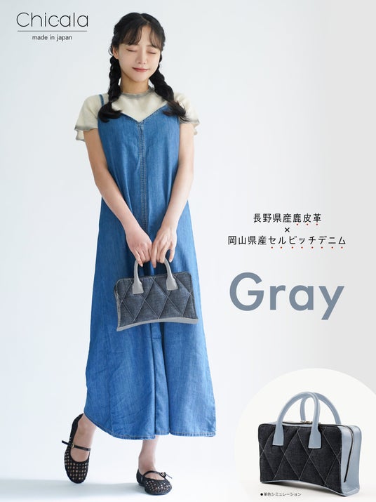 Chicala(シカラ)男女兼用2WAYハンドバッグ(鹿皮革+セルビッチデニム)