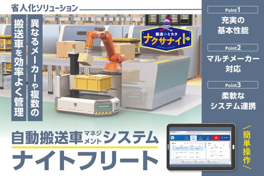 製造・物流現場のお悩みをDXで解決するDX化支援ソリューション『ナクサナイト』を提供する株式会社ティーネットジャパン(代表取締役:木本 泰樹)は、7月9日より自動搬送車マネジメントシステム『ナイトフリート』の本格提供を開始します。