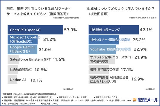 株式会社ラクス(本社所在地:東京都渋谷区、代表取締役:中村 崇則)が提供する商談獲得特化型ツール「配配メールBridge」は、BtoB企業の営業部門担当者・責任者を対象に「BtoBセールスにおける生成AI活用実態調査」を実施しました。