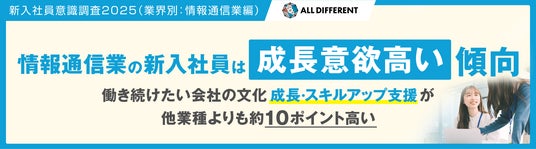 累計20,000社450万人以上の組織開発・人材育成を支援するALL DIFFERENT(オールディファレント)株式会社(所在地:東京都千代田区 代表取締役社長:眞崎大輔)および「人と組織の未来創り(R)」に関する調査・研究を行うラーニングイノベーション総合研究所(R)は3月25日~4月24日の期間で、2025年度入社の新入社員3,933人を対象に「新入社員意識調査」を行いました。本リリースでは、情報通信業の新入社員の調査結果を公表いたします。