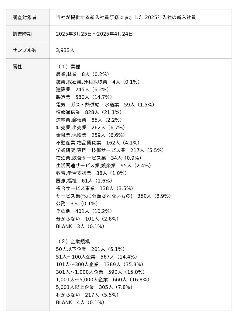 *本調査を引用される際は【ラーニングイノベーション総合研究所「新入社員意識調査2025(業界別:情報通信業編)」】と明記ください