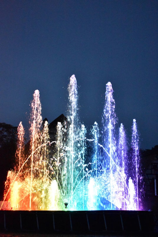 音楽に合わせてリズミカルに動く噴水と約 500 発の
