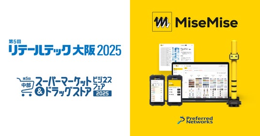 株式会社Preferred Networks(本社:東京都千代田区、代表取締役 最高経営責任者:西川徹、以下PFN)は、チェーンストア向け業務改善ソリューションMiseMise(TM)(ミセミセ)を、2025年7月10日(木)-11日(金)にインテックス大阪で開催されるリテールテック大阪2025、2025年7月16日(水)-17日(木)にポートメッセなごやで開催される第5回中部スーパーマーケット&ドラッグストアビジネスフェア2025に出展します。