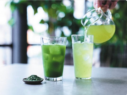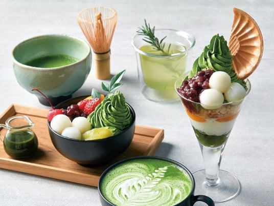 九州大学「久山町研究」の研究結果からも「テアニン」摂取が糖尿病の発症に対して保護的に働く結果が得られており、「伊右衛門カフェ」では、心も身体も前向きで健やかな状態を保つために「Green Tea First=まずは、お茶を一杯」をお薦めしています。京都の老舗茶舗「福寿園」の茶葉を使用した日本茶をはじめ、日本茶を使用したオリジナルのアレンジメニューも取り揃えております。
