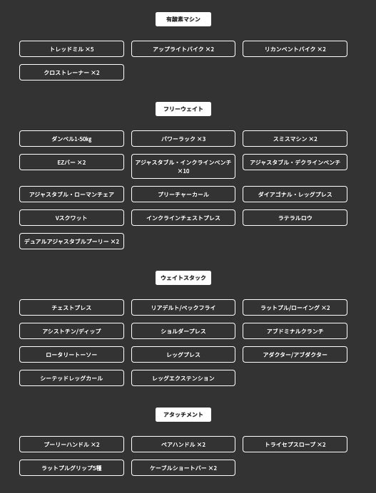 月額2,980円でこの充実度?本格マシン45台以上を完備