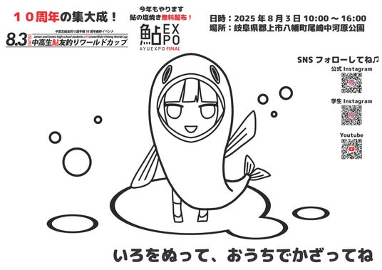 さらに本イベントは、8月3日に開催される「中高生鮎友釣りワールドカップ」本大会への関心喚起と来場促進の役割も担っています。大会当日の感動や熱気をより多くの方に共有いただけるよう、プレイベントとしての位置づけのもと、実際に郡上の地へ足を運んでいただくきっかけとなることを目指しています。