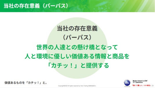 弊社のパーパスは、「人と環境に優しい価値ある情報と商品を提供する」です。従業員数は30名弱ですが、SBTの認証や、横浜市及び神奈川県のSDGsパートナーへの登録、横浜市の中小企業脱炭素モデル企業への選出など、小さい会社ながらも脱炭素に貢献する取り組みを進めています。