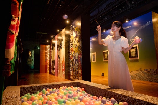 「動き出す浮世絵展」は、葛飾北斎、歌川国芳、歌川広重、喜多川歌麿、東洲斎写楽、歌川国貞など世界的な浮世絵師の作品300点以上をもとに、3DCGアニメーションやプロジェクションマッピングを駆使して大人から子どもまで楽しめるグラフィカルなデジタルアート作品として描き、約9エリアの立体映像空間で浮世絵の世界に没入できるイマーシブ体感型デジタルアートミュージアムです。
