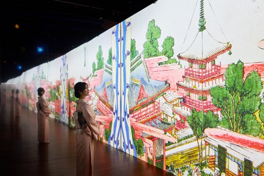 葛飾北斎、歌川国芳、歌川広重、喜多川歌麿、東洲斎写楽、歌川国貞など世界的な浮世絵師の作品300点以上をもとに、3DCGアニメーションやプロジェクションマッピングを駆使して大人から子どもまで楽しめるグラフィカルなデジタルアート作品として描き、9つの立体映像空間で浮世絵の世界に没入できるイマーシブ体感型デジタルアートミュージアムです。デジタル展示に加え、江戸時代に刷られた著名な浮世絵や復刻版の浮世絵も展示し、浮世絵の歴史や江戸の文化、浮世絵師たちについて解説します。