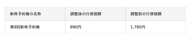 本件株式分割に伴い、当社発行の新株予約権の1株あたりの行使価額を、2025年10月1日以降、以下のとおり調整いたします。